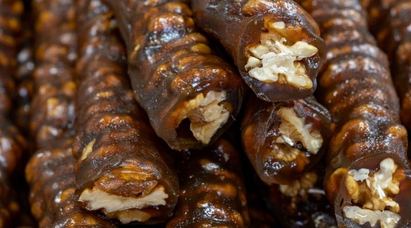 Sucuk cu nuci este unul dintre deserturile delicioase. Este un desert tradițional cu glazură de melasă și nuci. De obicei, este un desert care poate fi consumat cu ceai sau cafea.